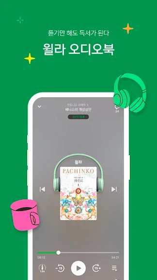 - 전자책을 읽으면서 고퀄리티 오디오북을 동시에 즐길 수 있어요.