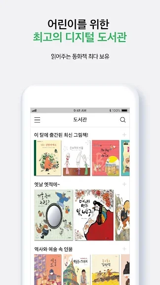• 어린이 책들만 이용 가능한 키즈 모드로 어린이도 자유롭게 앱 탐색이 가능