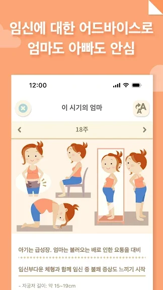 1) 주수에 따라 변하는 태아와 산모 상태를 귀여운 콘텐츠로 확인하세요.