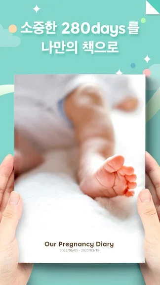 앱에 저장한 초음파 사진, 만삭 사진, 일기, 서로 주고받은 카드 등 더없이 소중한 임신 기간의 추억을 한 권의 책으로 남길 수 있습니다.