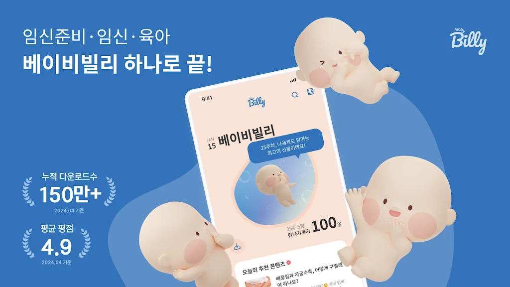 280일의 임신 주차별로 산모와 아기에게 필요한 건강 정보를 알려줘요. 가족 공유 기능을 통해 부부끼리 태담 기록을 공유하고, 아빠 맞춤형 꿀팁까지 확인할 수 있어요! 출산 후에도 육아 시기별 아기 발달 정보를 간편하게 확인해요. 임신+육아까지 베이비빌리에서 해결! 처음이어도 걱정 없는 임신 & 육아 라이프가 가능해져요!