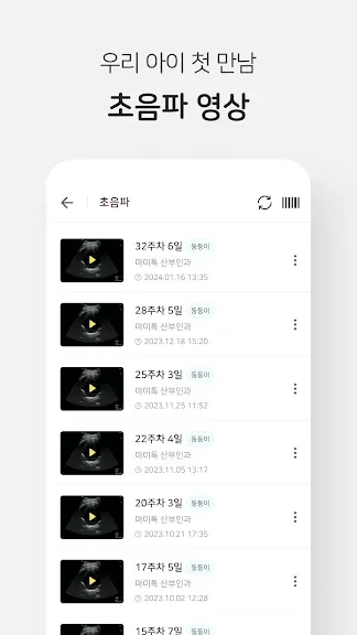 병원에서 녹화한 태아 초음파 영상을 마미톡에서 편리하게 바로 확인하고 초대코드를 통해 가족들과 쉽게 공유해보세요.