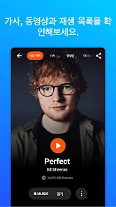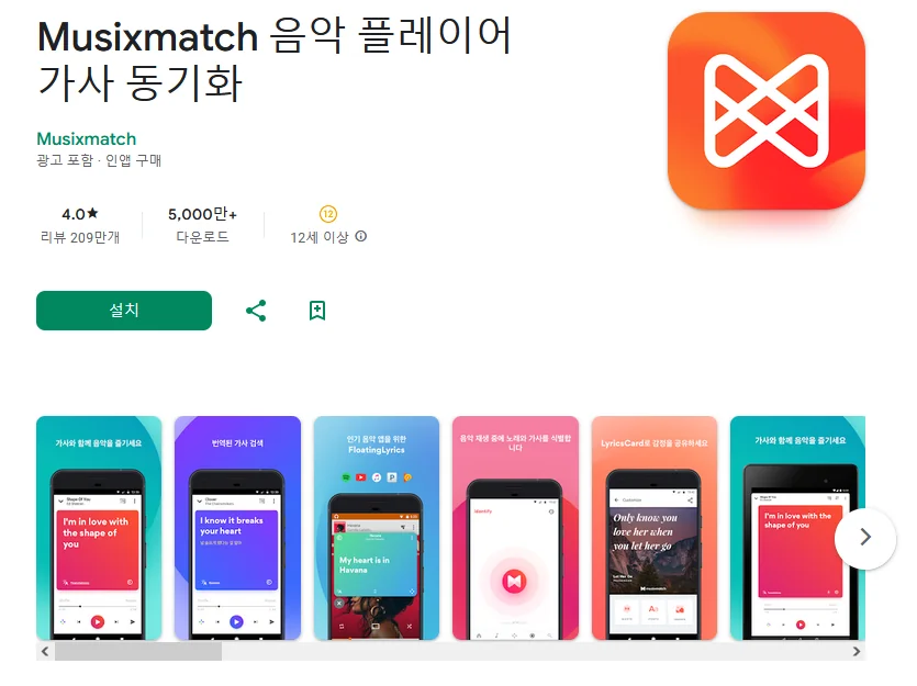 아래는 Musixmatch 음악 플레이어 가사 동기화 어플에 대한 스크린샷 정보입니다.