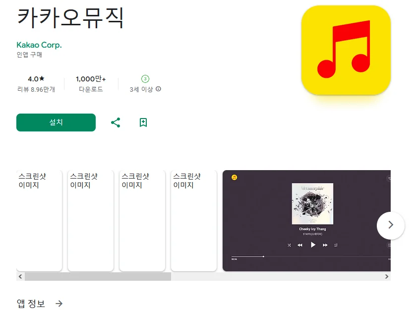 아래는 카카오뮤직 어플에 대한 스크린샷 정보입니다.