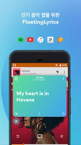 • 비디오와 일체화된 FloatingLyrics를 즐기기 위해 유투브를 전체화면이나 극장 모드로 재생하세요.