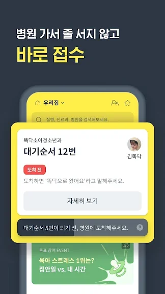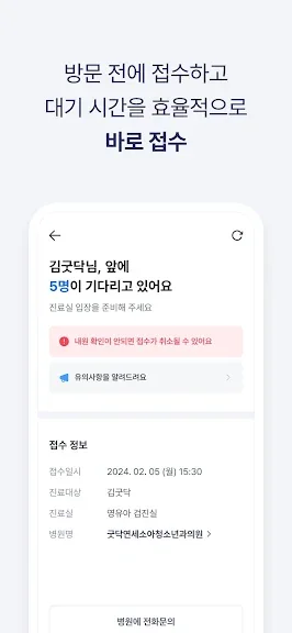 앱으로 접수하고 진료 순서가 가까워질 때 방문해요.