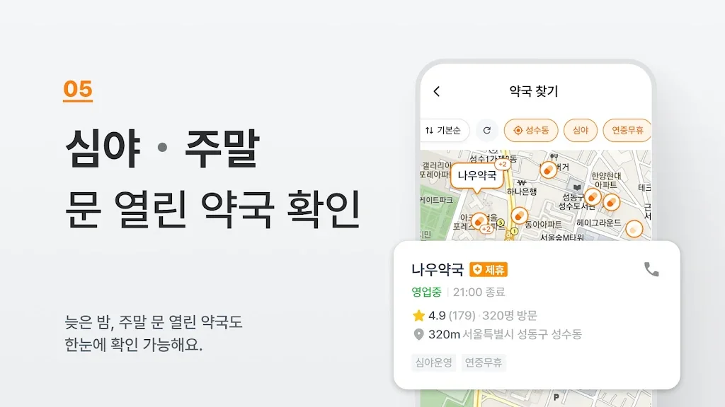 내 주변 실시간 문 연 병원/약국을 한 번에 찾을 수 있어요.