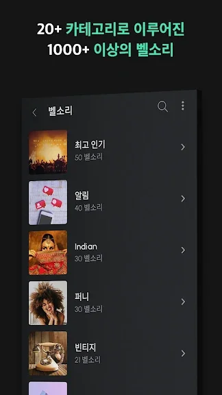 아래는 벨소리 Android™ 전용 어플에 대한 스크린샷 정보입니다.