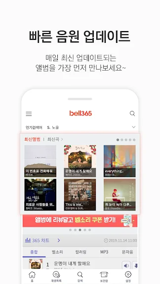 벨365의 다양한 음악을 만나보고, 개성 넘치는 벨소리와 알림음을 설정하여 나만의 스타일을 완성해보세요.