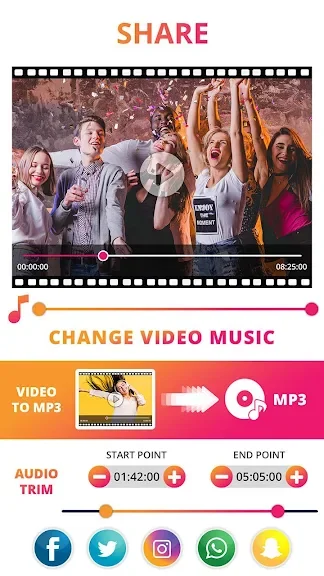 이 앱은 비디오에서 오디오를 쉽게 추출하고, 추출된 오디오를 다양한 형식으로 변환하거나 편집할 수 있는 강력한 도구입니다. 원하는 비디오에서 오디오를 .mp3, .aac, .wav 형식으로 추출하고, 해당 오디오를 잘라내어 새로운 파일로 저장할 수 있습니다.