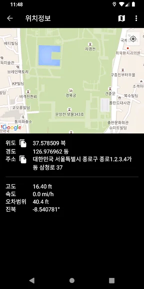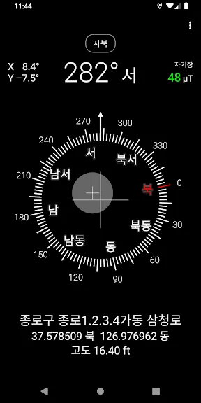 아래는 디지털 나침반 어플에 대한 스크린샷 정보입니다.