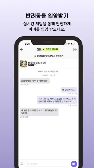 앱의 가장 큰 장점은 '안전한 보호자 인증' 제도입니다. 이를 통해 입양 희망자의 신원을 검증하여, 반려동물이 안전한 가정에 입양될 수 있도록 보장합니다. 또한, 사용자 간 신뢰도를 높이기 위해 미인증 사용자는 채팅방에서 미인증 보호자로 표시됩니다.