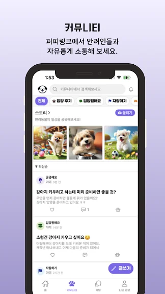아래는 퍼피링크 - 반려동물 가정입양 플랫폼 어플에 대한 스크린샷 정보입니다.