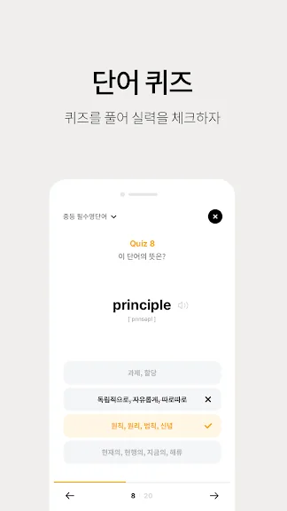 - 퀴즈 형식으로 재미있게 단어를 외울 수 있어 학습이 지루하지 않습니다.