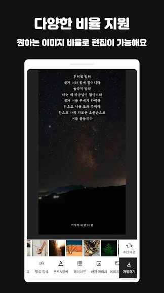 - 이미지 저장 시 다양한 비율로 만들 수 있습니다.