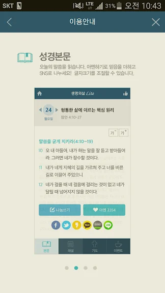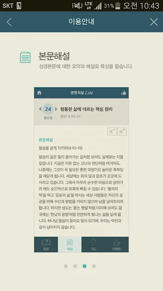 생명의삶 Lite 어플에 대한 스크린샷 정보가 필요하시다면 아래 이미지를 참고하시기 바랍니다.