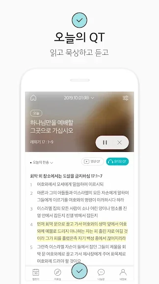 - 매일성경에서 제공하는 오디오해설을 통해서 QT를 이용하실 수 있습니다.