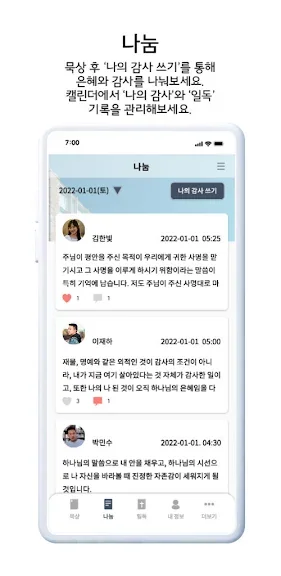 - 매일매일 묵상을 자신만의 묵상노트에 기록할 수 있습니다.