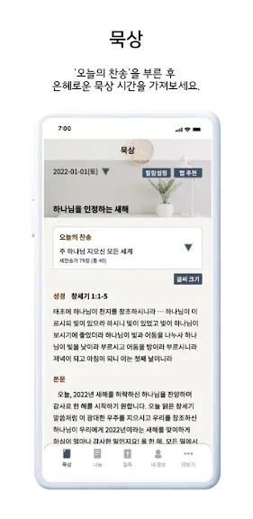 매일성경 리뉴얼 어플에 대한 스크린샷 정보가 필요하시다면 아래 이미지를 참고하시기 바랍니다.