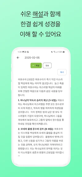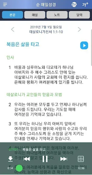 - 매일성경 책자와 동일한 해설을 제공합니다.
