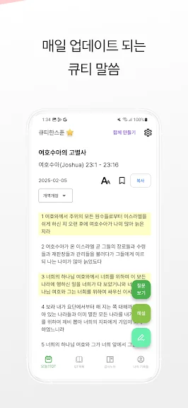 2) 큐티한스푼 - QT, 성경, 말씀, 해설, 질문 어플 스크린샷
