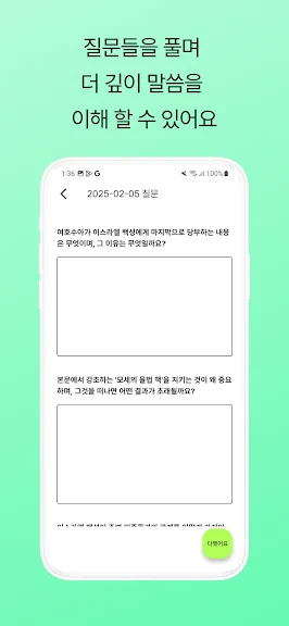 아래는 큐티한스푼 - QT, 성경, 말씀, 해설, 질문 어플에 대한 스크린샷 정보입니다.