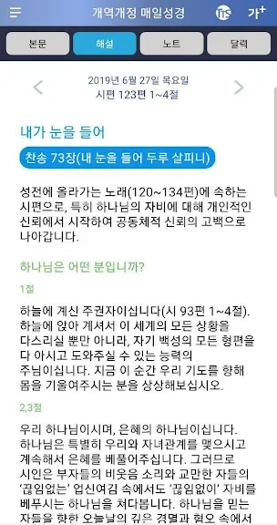 - 매일성경 책자와 동일한 성경(개역개정) 본문을 사용하고 있습니다.