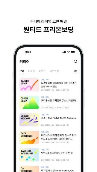 - 주니어 맞춤형 실전 교육 프로그램을 제공합니다 (프리온보딩)