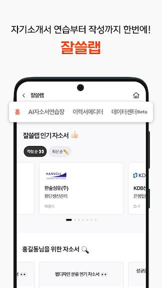 - 관심기업의 자기소개서 항목은 물론 양질의 합격 자기소개서 샘플, 생성형 AI를 활용한 자기소개서 연습까지 잘쓸랩 하나면 끝!