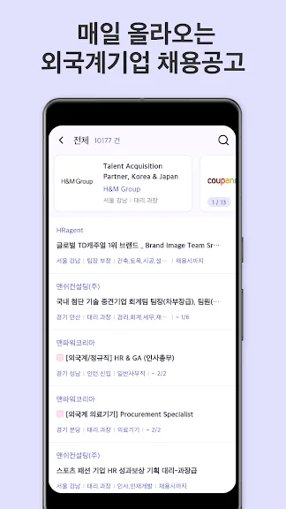 - 앱에서 외국계기업의 채용공고를 보시고 지원할 수 있습니다.