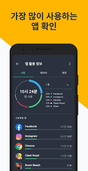 스마트 폰에 설치되어 있는 앱이 어떠한 개인정보(연락처, 위치, 통화 이력 등)에 접근하고 있는지 한 눈에 확인할 수 있어요