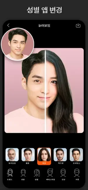 디지털 기술로 얼굴 특징을 향상시켜 더 정제된 자신의 모습을 볼 수 있습니다.