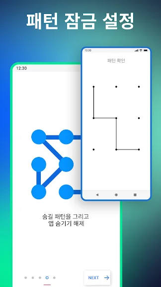 ✔️ 어플숨기기 런처를 처음 열고 앱을 선택하면 패턴을 설정하라는 메시지가 표시됩니다. 나중에 이 패턴을 변경할 수 있습니다.