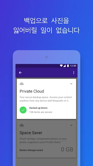 • 프라이빗 클라우드: Keepsafe에 최대 10,000개의 항목을 저장할 수 있습니다