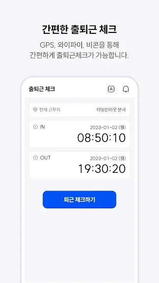 2) 타임인아웃 - 출퇴근체크, 근태관리 어플 스크린샷