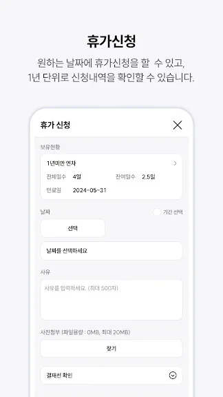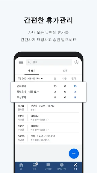언제 어디서나 모바일로 간편하게 휴가를 신청하고 휴가 내역을 조회하세요.