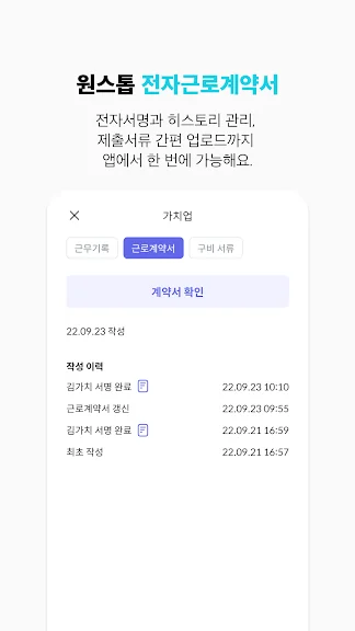 - 근로계약서 작성과 전자서명, 히스토리 보관 및 관리까지 근로자 앱에서 한 번에
