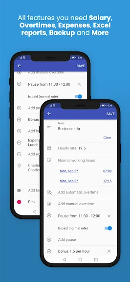 - 자동 일일/주간 초과 근무