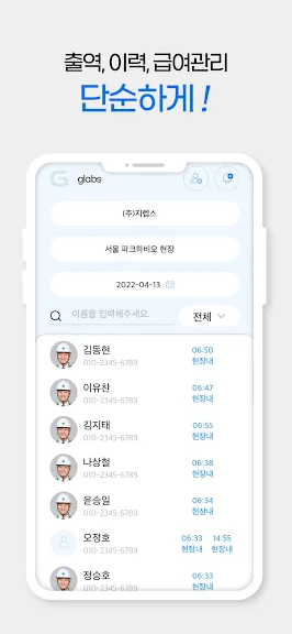 근태도우미 (Glabs) 어플에 대한 스크린샷 정보가 필요하시다면 아래 이미지를 참고하시기 바랍니다.