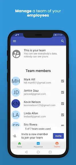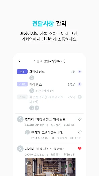 - 분 단위의 정확한 근무 기록으로 근로 시간과 급여를 투명하게 관리합니다.