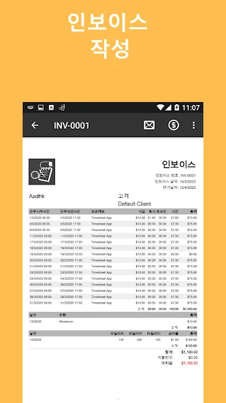 작업표 - 근무 시간 및 급여 근무 기록표 추적 어플을 만들어 주신 개발자님 감사합니다~