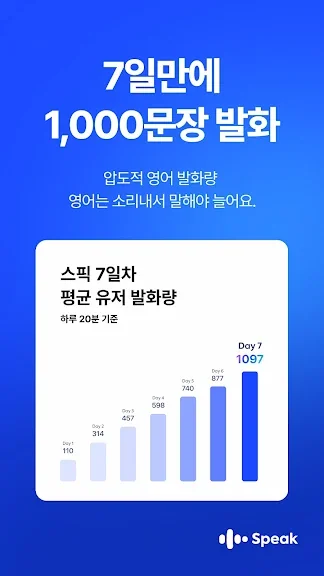 스픽은 현존하는 가장 빠르고 정확한 음성 인식 기능과 인공지능 기술을 활용한 영어 학습 앱으로, 기존에 없던 영어 회화 학습법을 선보입니다.