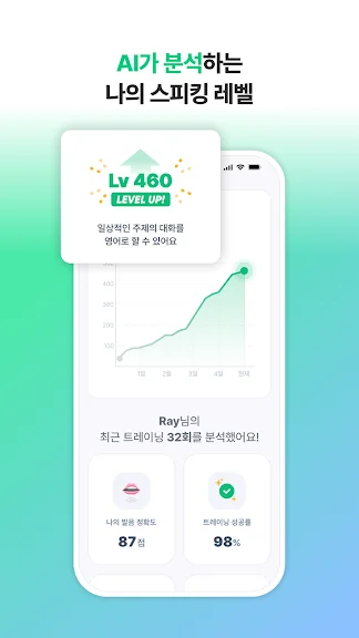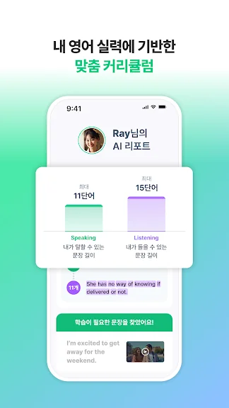 AI가 내 영어회화 실력을 정교하게 분석합니다. 말할 수 있는 문장 길이, 활용하지 못하는 단어, 부자연스러운 표현과 발음 등을 족집게처럼 찾아내죠. 이 분석을 바탕으로 나에게 가장 최적화된 학습을 제안합니다.