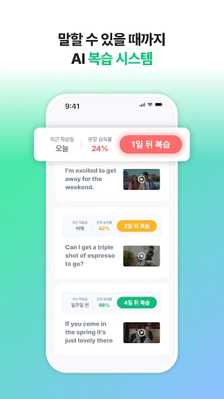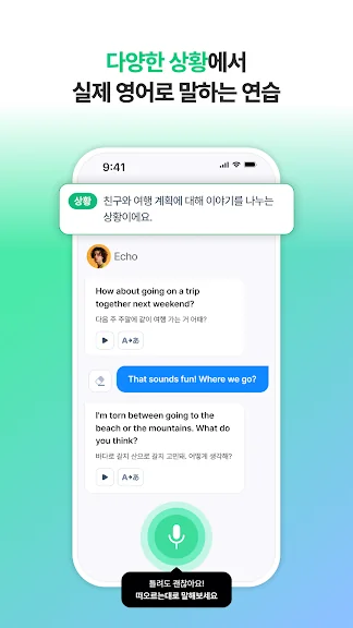 AI 실시간 음성인식으로 배운 단어와 문장을 암기하지 않고도 술술 나올 때까지 무제한 영어 스피킹!