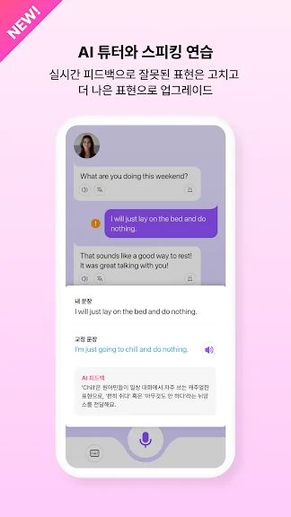 AI 레슨을 통해 쌍방향으로 프리토킹하며 실전 감각을 키워 보세요! 스픽 튜터가 내가 한 모든 말을 모두 교정하고, 어떻게 말해야 더 자연스러운지 알려줘요 단어 및 자주 틀리는 문법 등 필요한 강의도 만들어 드려요.