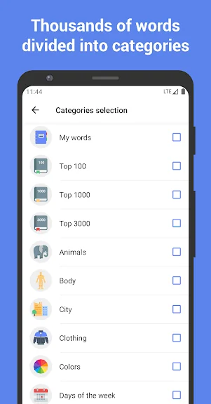 러시아어 단어의 다양하고 방대한 선택을 공부하는 것 외에도, 가장 흥미로운 방식으로 듣기, 읽기, 쓰기 기술을 연습할 수 있습니다! 각 테스트에서는 카테고리에 대한 지식에 따라 수행하고 싶은 활동을 선택할 수 있습니다.