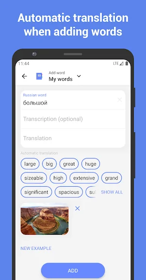 • 나만의 플래시카드를 쉽게 추가: 번역, 사진, 예시 문장이 자동으로 채워집니다.
