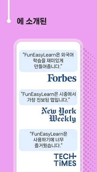FunEasyLearn은 언어 학습에 혁명을 일으키고 있습니다. 언어학자들과 교사들로 구성된 우리 팀은 독특한 언어 학습 전략을 개발해 냈습니다. 비결은 알파벳과 모든 읽기 규칙, 필요한 단어, 그리고 실용적인 구절을 하나의 어플로 결합하는 것이었습니다. 사용자들이 단어나 문장을 읽고, 정확하게 발음하고, 이미지 와 연관시키고, 그것을 듣고, 쓰고, 말하는 게임으로 연습할 수 있게 도와줍니다.