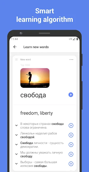일을 위해 러시아어를 배워야 하거나, 러시아로 여행을 가거나, 러시아 영화를 원작으로 보고 줄거리를 이해하고 싶다면 여기 있습니다! 백만 명이 넘는 사용자가 ReWord를 사용하여 다양한 언어로 어휘를 확장하게 되어 기쁩니다! 이 앱을 사용하면 전용 시스템을 사용할 수 있으며 많은 노력 없이 러시아어 단어를 암기할 수 있습니다.