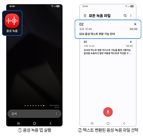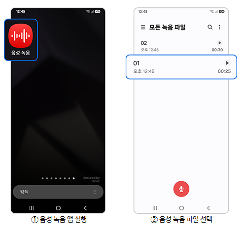 1단계) 음성 녹음 앱을 실행하고 텍스트로 변환할 녹음 파일을 선택합니다.